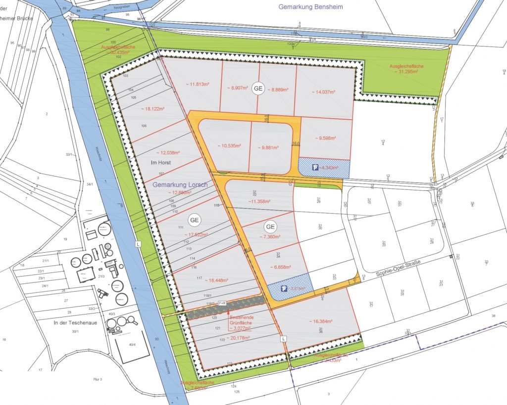Das geplante Gebiet liegt verkehrsgünstig an der Bundesstraße 47 sowie in unmittelbarer Nähe zu den Autobahnen A 67 und A 5. Durch die bereits vorhandene Infrastruktur – bestehende Straßenanbindungen sowie Energie- und Wasserversorgung aus Richtung Bensheim und Lorsch – ist das Areal weitgehend erschlossen. Nach derzeitigem Stand sind daher keine erheblichen zusätzlichen Erschließungskosten zu erwarten.